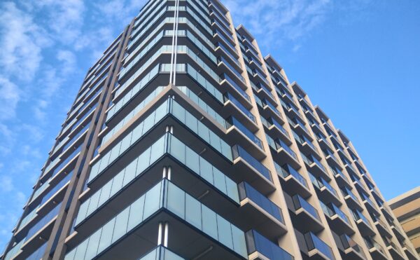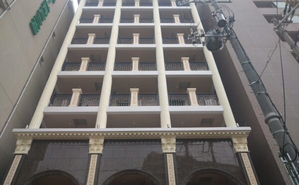 ポートアイランド学生寮新築工事 外観 消防認定品キューピクル 住戸部低圧出迎え8回線 共用部高圧出迎え 地中引込 管理人室